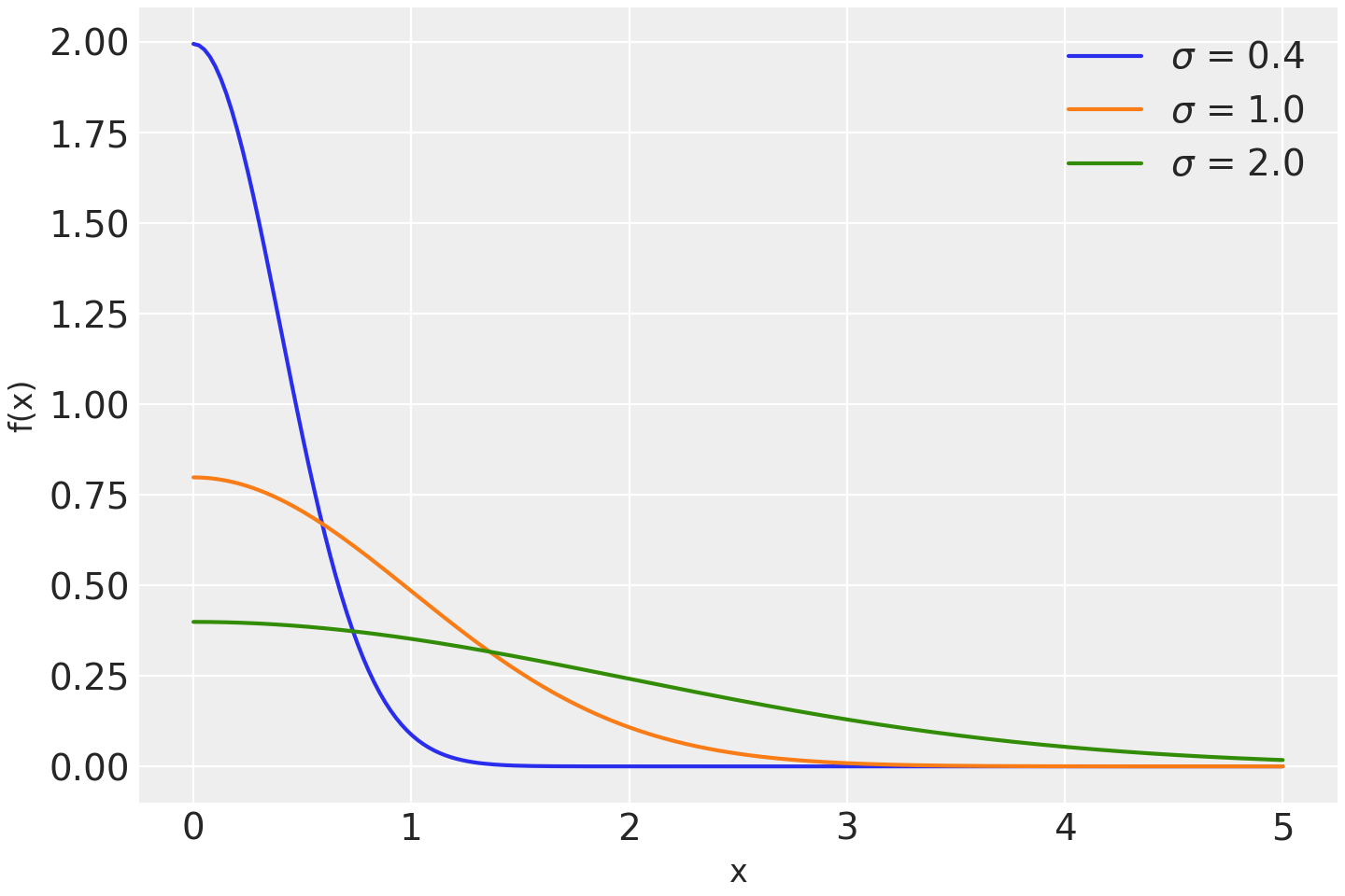 \[ \begin{align}\begin{aligned}f(x \mid \tau) = \sqrt{\frac{2\tau}{\pi}} \exp\left(\frac{-x^2 \tau}{2}\right)\\f(x \mid \sigma) = \sqrt{\frac{2}{\pi\sigma^2}} \exp\left(\frac{-x^2}{2\sigma^2}\right)\end{aligned}\end{align} \]
